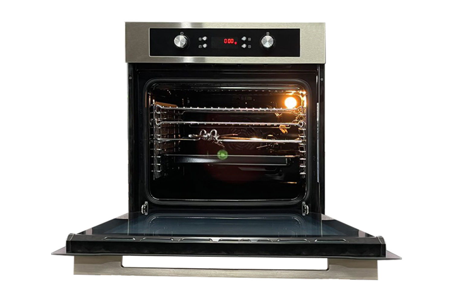 Bảng điều khiển điện tử kết hợp núm điều chỉnh âm và màn hình LED: Bảng điều khiển lò nướng Eurosun EOV65DE hiển thị rõ ràng, dễ thao tác và sử dụng, núm điều chỉnh âm tạo điểm nhấn thiết kế và không gian sang trọng cho lò