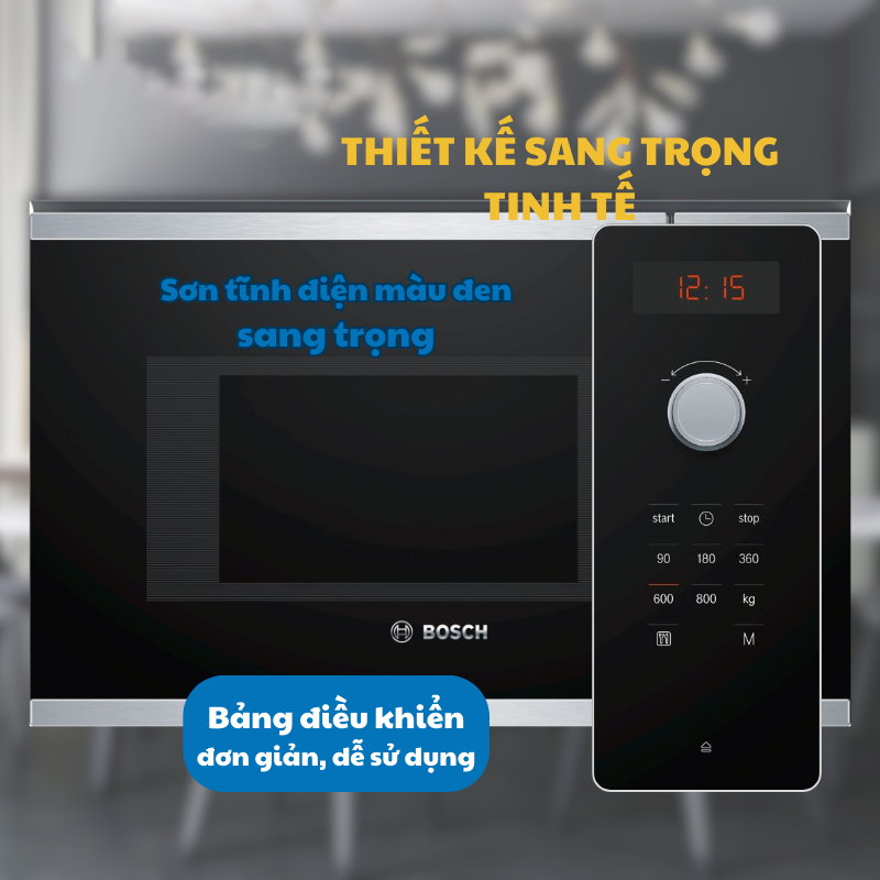 – Lò vi sóng Bosch có thiết kế lắp âm tủ tiết kiệm không gian, mặt trước sáng bóng, đường nét rõ ràng tăng nét sang trọng, hiện đại.