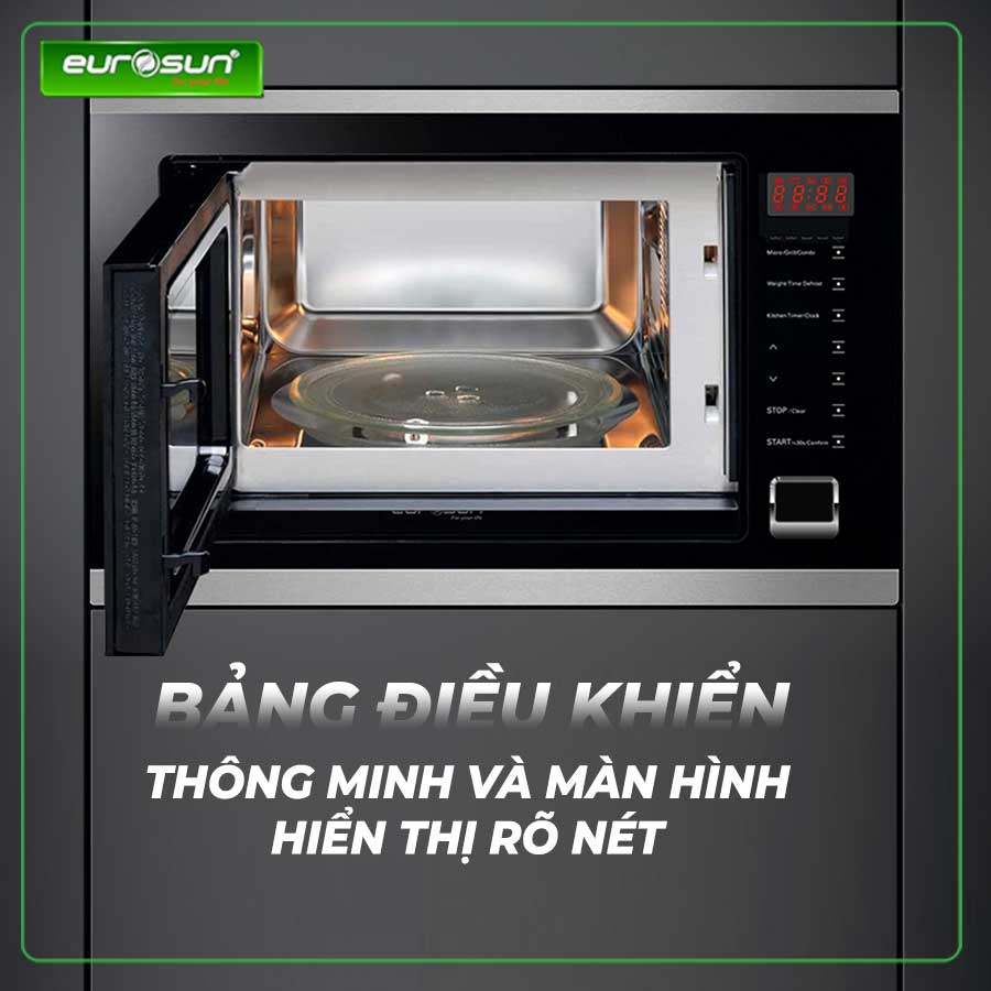 Nhiều tính năng nấu kết hợp: Lò có 5 cấp độ nấu vi sóng (P100, P80, P50, P20, P10) và 2 chương trình nướng kết hợp vi sóng. Ngoài ra lò vi sóng Eurosun MWO-30EUR có nhiều chức năng nấu được lập trình sẵn như chế biến Pizza, Rau củ quả, Thịt, Cá, Bánh… rất tiện lợi khi sử dụng