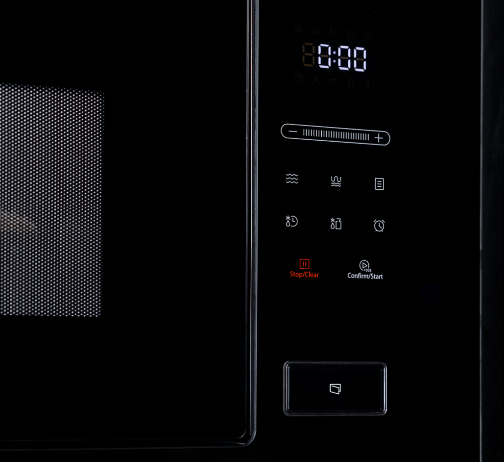 - Lò vi sóng sở hữu mặt kính đen phối inox đen sang trọng, tạo điểm nhấn tinh tế cho gian bếp nhà bạn.