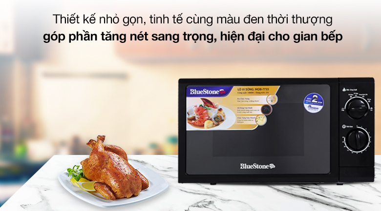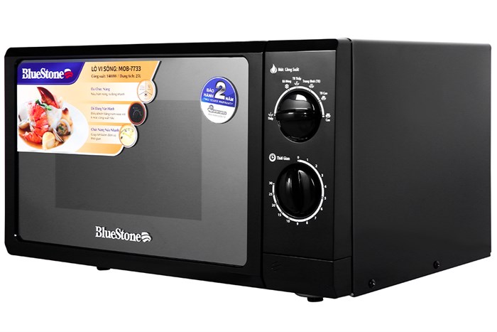 - Lò vi sóng BlueStone MOB-7733 25 lít thiết kế sang trọng, nấu, hâm nóng, rã đông thực phẩm nhanh chóng, bảng điều khiển nút vặn tiếng Việt dễ hiểu, dễ điều chỉnh với 6 mức công suất.