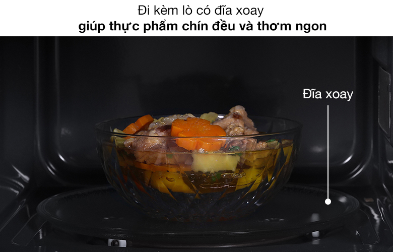 - Đi kèm lò có đĩa xoay hỗ trợ nấu ăn tiện lợi, linh hoạt hơn, giúp thực phẩm chín đều và thơm ngon