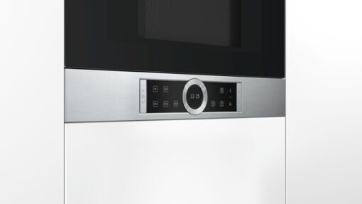 Lò vi sóng Bosch BFL634GS1B với thiết kế cửa mở điện tử, cửa lò có thể dễ dàng được mở bằng cách chạm vào nút cảm biến.