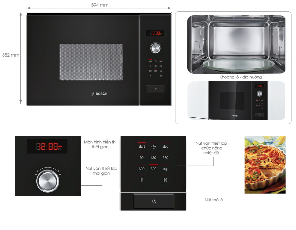 Lò vi sóng Bosch BEL523MS0 được sản xuất trên dây chuyền công nghệ hàng đầu cùng với quá trình gia công nghiêm ngặt và khắt khe từ khi bắt đầu cho đến khi kết thúc. Vì vậy, lò hấp Bosch nói chung và lò vi sóng Bosch BEL523MS0 nói riêng luôn mang lại hiệu quả nướng tối đa, tiết kiệm năng lượng và thân thiện với môi trường.