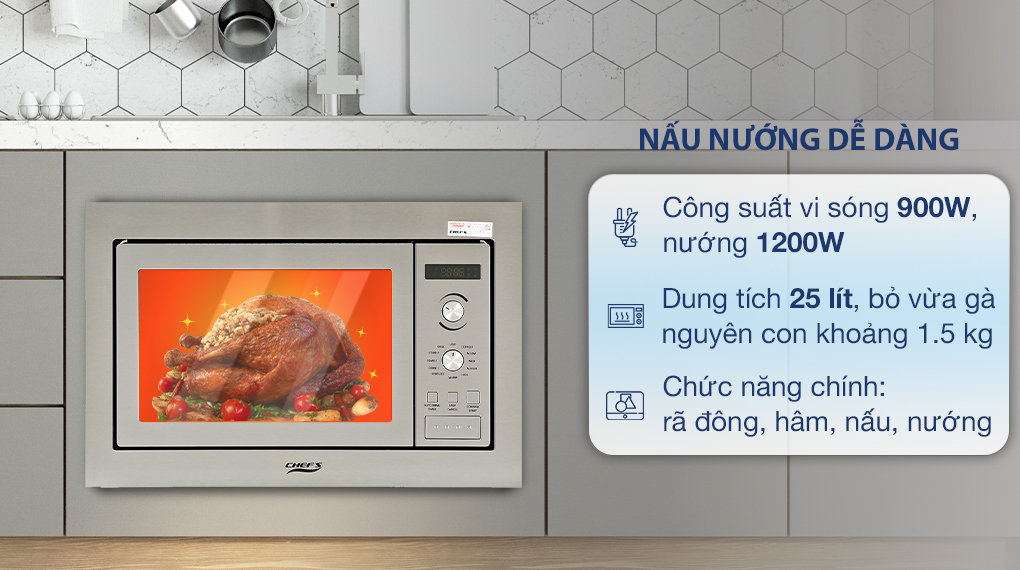 Lò vi sóng âm có nướng Chef’s EH-MW801S thiết kế lắp âm sang trọng, nấu nướng thức ăn đa dạng và tiện lợi, hứa hẹn sẽ hỗ trợ quá trình nấu nướng trở nên dễ dàng và nhanh chóng hơn.