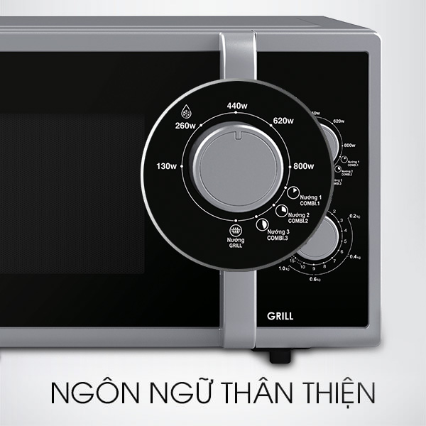 Bảng điều khiển của lò vi sóng hỗ trợ ngôn ngữ Tiếng Anh và Tiếng Việt giúp bạn dễ dàng thao tác trong suốt quá trình sử dụng.