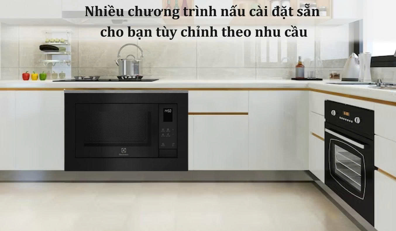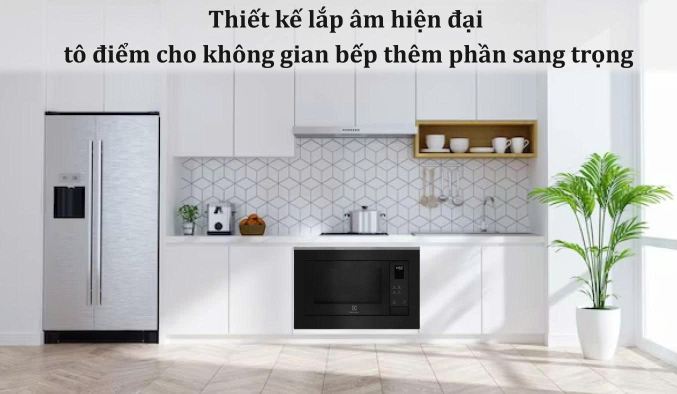 Lò vi sóng Electrolux 25 lít EMSB25XG kiểu dáng thời thượng với thiết kế lắp âm giúp tiết kiệm không gian, tạo điểm nhấn cho căn bếp thêm phần sang trọng. Dung tích 25 lít có thể để vừa gà nguyên con khoảng 1.5 kg. Khoang lò làm bằng chất liệu cao cấp an toàn khi dùng, tiện vệ sinh sau khi dùng. Kết hợp thêm tính năng nướng thuận tiện cho bạn sử dụng.