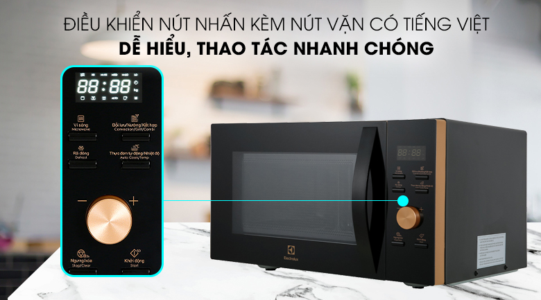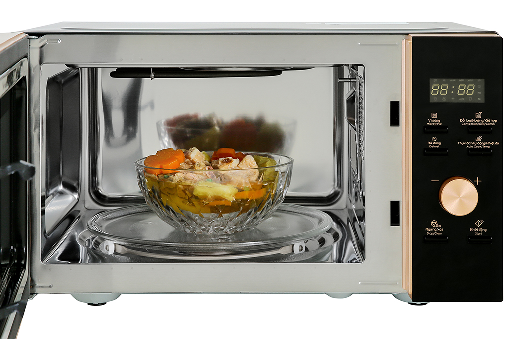 Công suất mạnh mẽ: vi sóng 900W, nướng 1300W, nướng đối lưu 2300W với 5 mức điều chỉnh giúp chế biến thức ăn nhanh chóng, tiết kiệm điện năng và thời gian.