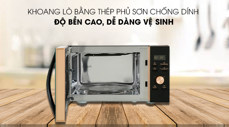 Lò vi sóng có nướng với khoang lò bằng thép phủ sơn chống dính nấu nướng thực phẩm an toàn, dễ lau chùi đảm bảo vệ sinh