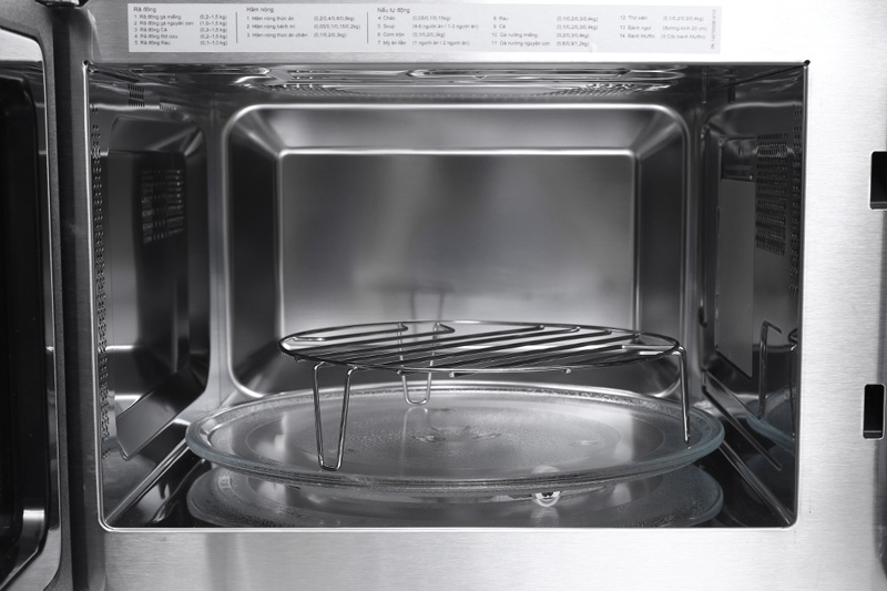 Lò vi sóng đa chức năng: nấu, hâm nóng, rã đông với công suất vi sóng tới 800W, cộng thêm chức năng nướng đối lưu tiện dụng với công suất nướng đến 1100W