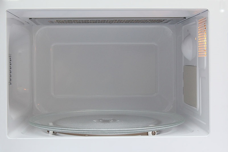 Đĩa xoay tròn giúp làm chín đều thực phẩm, trong lò có đèn chiếu sáng tiện lợi quan sát thức ăn bên trong