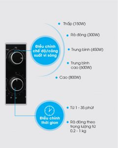 • Lò vi sóng có điều khiển nút vặn đơn giản, dễ dàng thao tác.