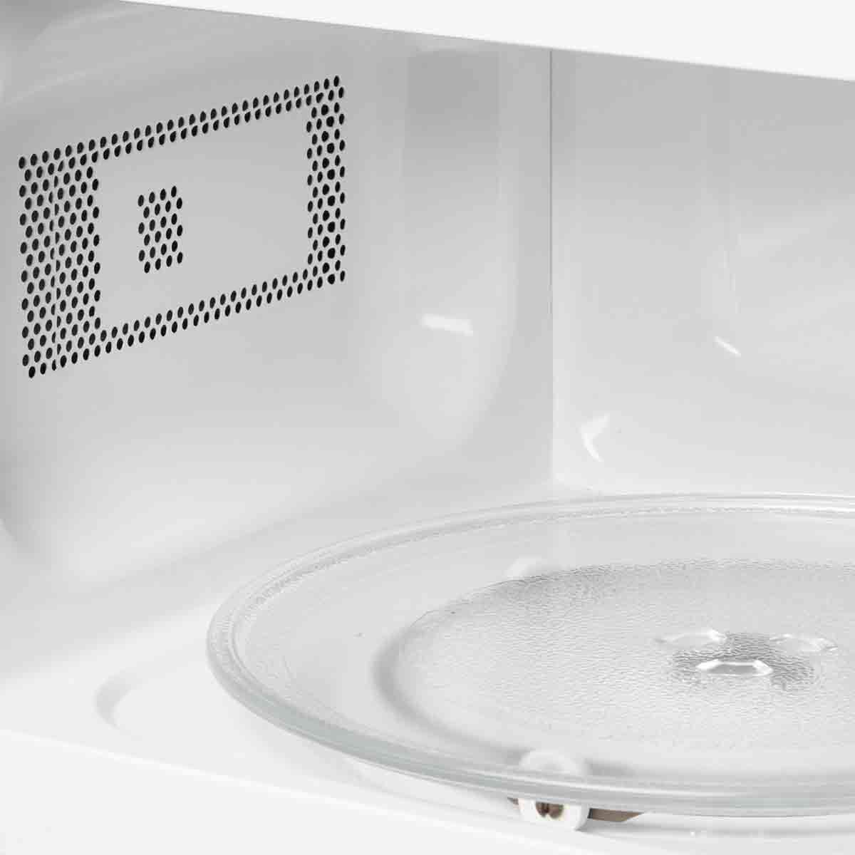 Phần thân lò làm từ chất liệu thép không gỉ không gỉ, chắc chắn, không bám dấu vân tay. Cửa lò bằng kính cường lực cao cấp màu đen có khả năng chịu lực, chịu nhiệt, giữ ổn định nhiệt độ trong khoang, độ bền cao. Khoang máy sử dụng vật liệu Inox 304 đảm bảo an toàn thực phẩm và dễ dàng vệ sinh. Đĩa xoay thủy tinh chịu nhiệt, đường kính 270mm làm cho thức ăn chín đều.