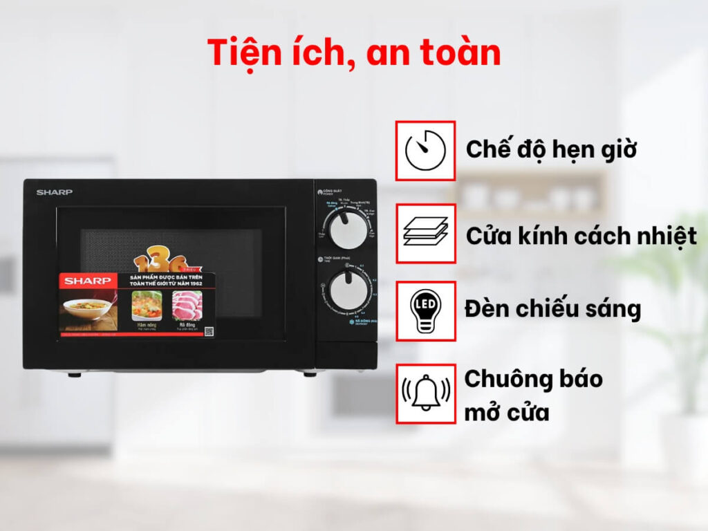 Lò vi sóng Sharp R 208VN WS còn có chức năng hẹn giờ tối đa 30 phút, khi hết thời gian, lò sẽ tự động ngắt giúp người nội trợ chủ động hơn trong việc nấu nướng, tránh làm cháy khét thực phẩm, mang lại sự yên tâm khi sử dụng.