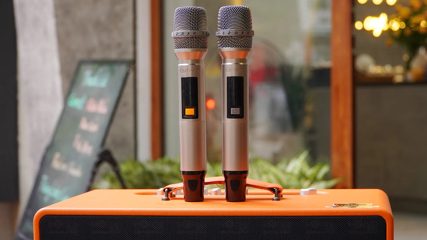 Loa karaoke xách tay Arirang MB2 Pro+ Plus đi kèm 2 micro không dây chất lượng cao, với khả năng thu sóng không dây ổn định và chuẩn xác. Sử dụng dải tần UHF, loa bắt sóng cực chuẩn trong khoảng cách xa khoảng 3m, và micro cực nhạy giúp bạn hát karaoke một cách xuất sắc.