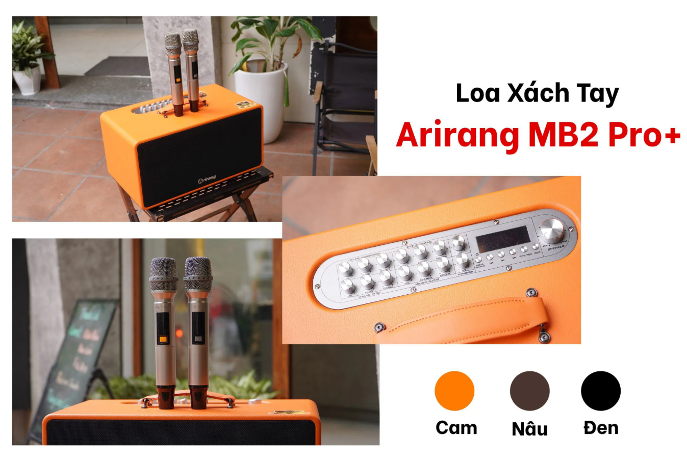 - Màu sắc: Loa Arirang MB2 Pro+ Plus sẽ có 3 phiên bản màu sắc: Cam, Nâu và Đen