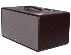 Thùng loa karaoke mini  Arirang MB2 Pro được chế tác từ gỗ cao cấp, với các góc cạnh bo tròn mềm mại và lớp da màu nâu phủ ngoài, tạo nên vẻ sang trọng và tinh tế tăng tính thẩm mỹ cho sản phẩm, phù hợp với nhiều không gian nội thất khác nhau.