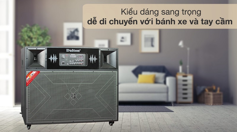 Mặt lưới phía trước Dalton TS-18A8000 được nhà sản xuất sử dụng chất liệu thép phủ lớp sơn tĩnh điện màu xám rất bắt mắt và sang trọng. Các họa tiết trên mặt lưới cũng giúp tăng thêm tính thẩm mỹ cho loa. 2 tay nắm được bố trí ở 2 bên thân của loa giúp thuận tiện cho việc di chuyển.