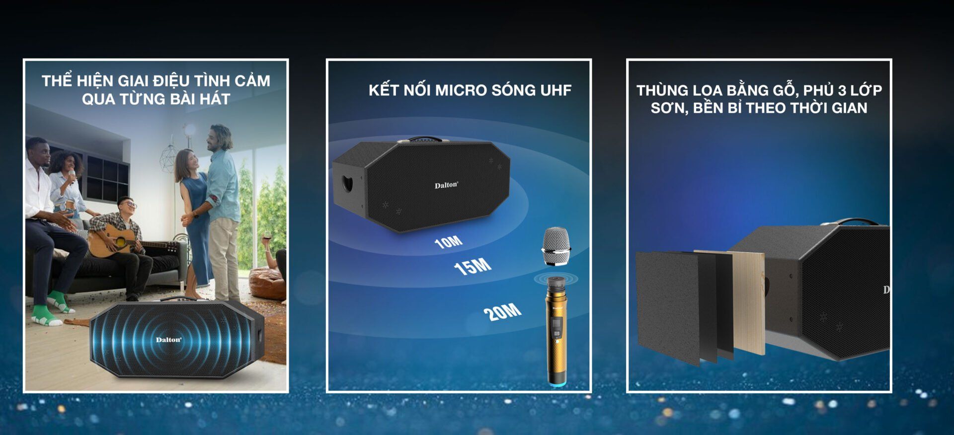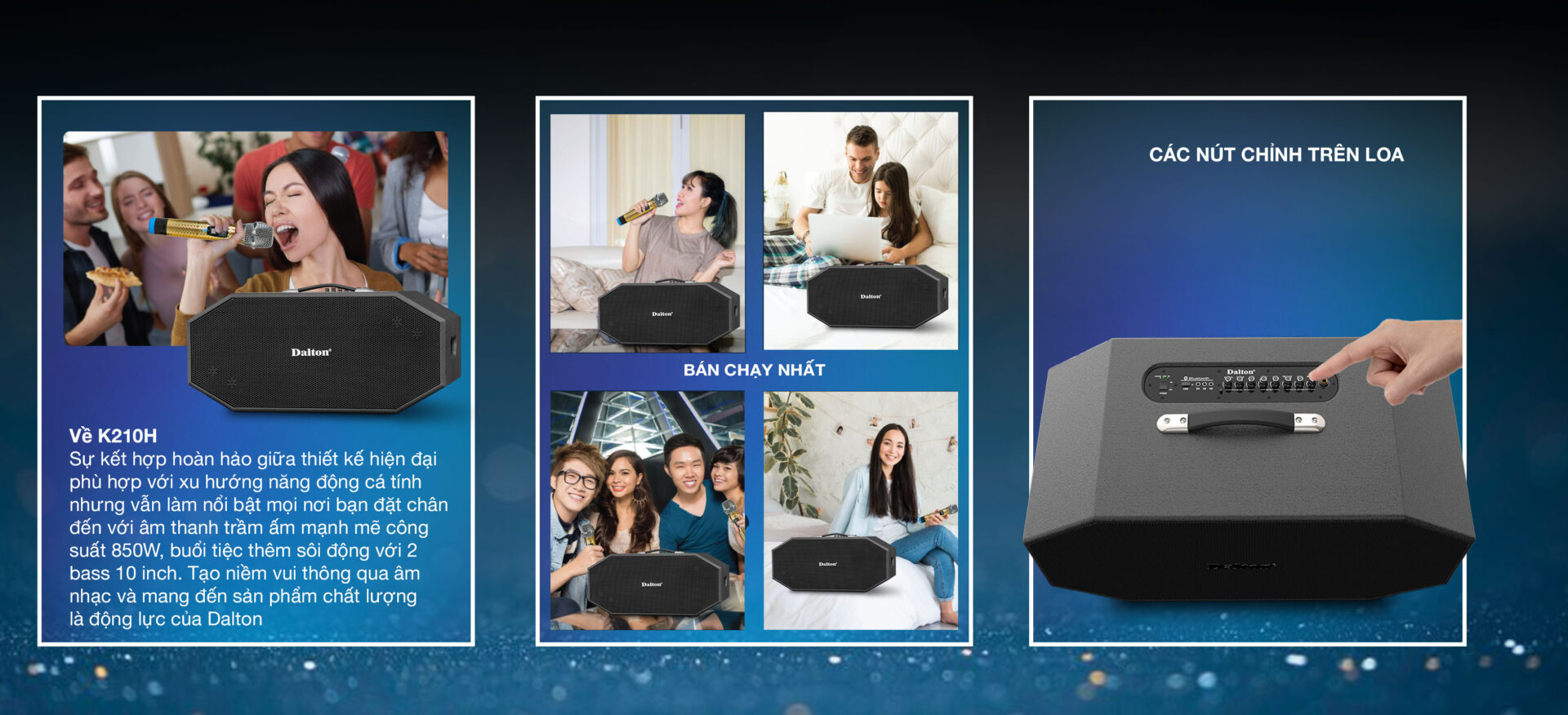 Dalton K210H không chỉ là một chiếc loa karaoke xách tay thông thường, mà còn là biểu tượng của sự kết hợp hoàn hảo giữa công nghệ âm thanh tiên tiến và thiết kế hiện đại. Với công suất mạnh mẽ, tính di động và chất âm siêu nội lực, Dalton K210H sẽ là đối tác đáng tin cậy của bạn trong mọi dịp tiệc tùng và giải trí. Hãy sở hữu ngay Dalton K210H để trải nghiệm sự hoàn hảo từ hôm nay!
