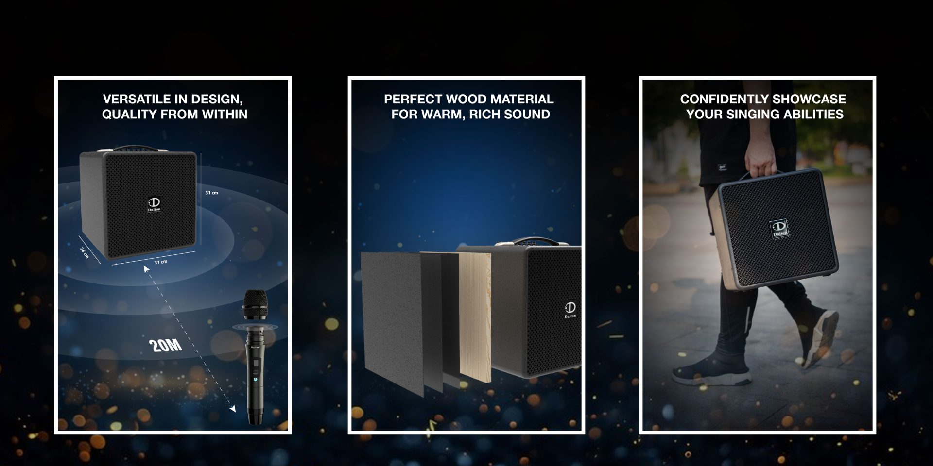 Mặt trên của loa là nơi bố trí các nút điều chỉnh cùng với quai sách chắc chắn giúp người dùng di chuyển một cách thuận tiện. Lớp ê-căng chắc chắn cùng logo Danton giúp tăng độ nhận diện cho thương hiệu. Dalton PS-K9A không đi đơn thuần là một chiếc loa karaoke mà còn giúp nâng tầm sang trọng cho không gian của bạn.