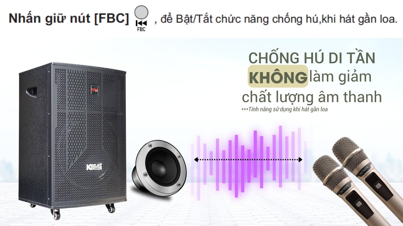 Công nghệ Chống Hú Di Tần – Một tính năng phương pháp chống hú bằng cách dịch chuyển tần số. Ưu điểm của phương pháp này là Mic vẫn nhẹ hơi dễ hát như bình thường. Đây là tính năng đã được tích hợp và lập trình tự động có sẵn trong máy. Khi người dùng muốn hát gần loa chỉ cần nhấn giữ nút [FBC] để sử dụng chức năng này.