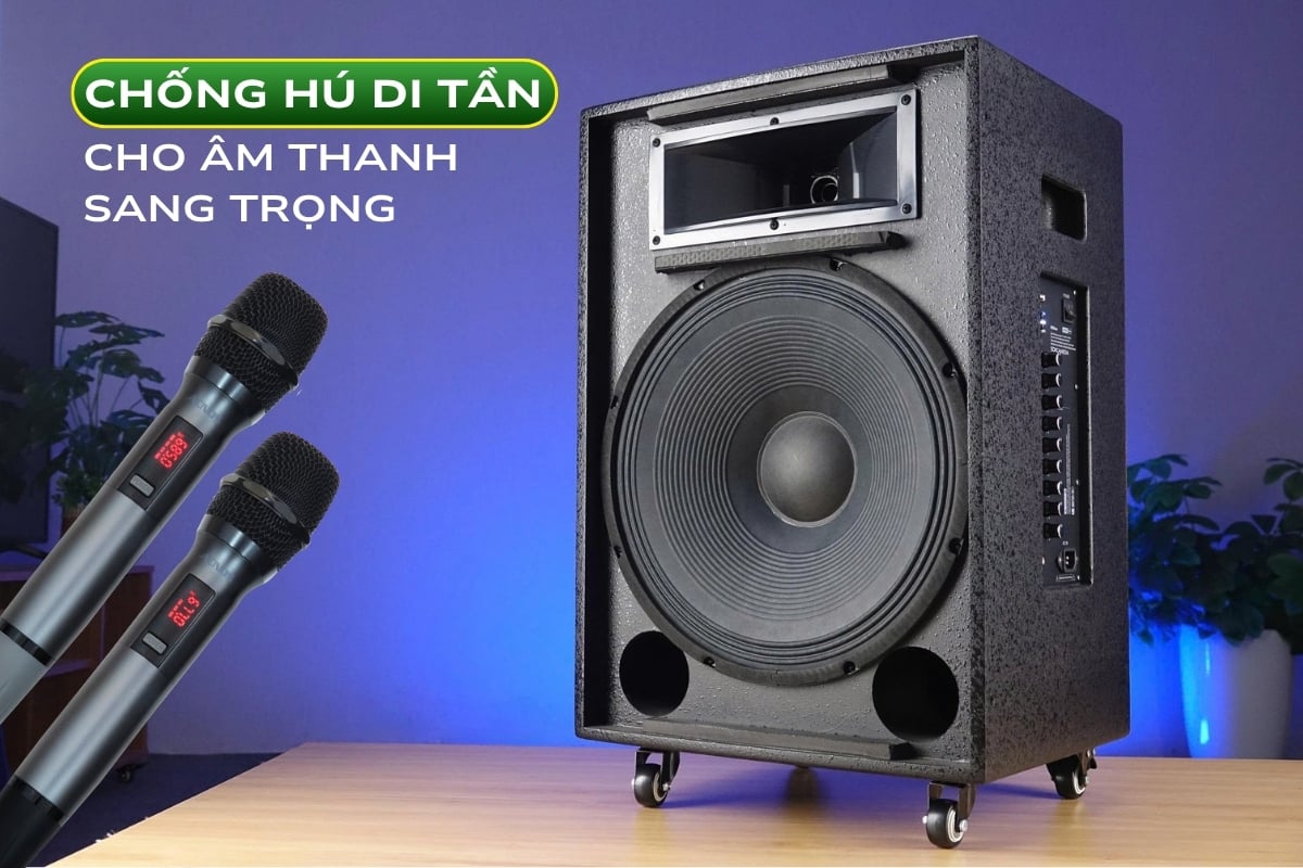 - Hệ thống loa bao gồm loa Bass 40cm (15″) + loa Treble