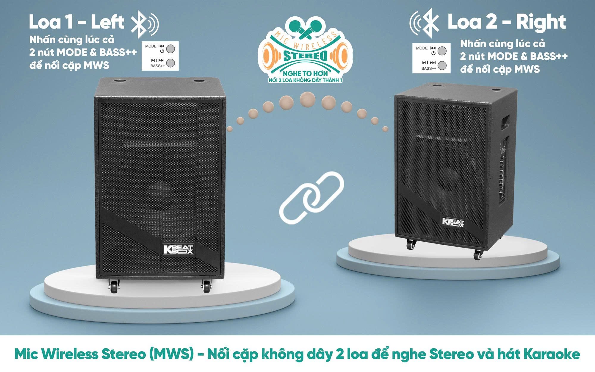 Mic Wireless Stereo (MWS) là tính năng nối cặp không dây 2 loa để nghe Stereo và hát Karaoke.