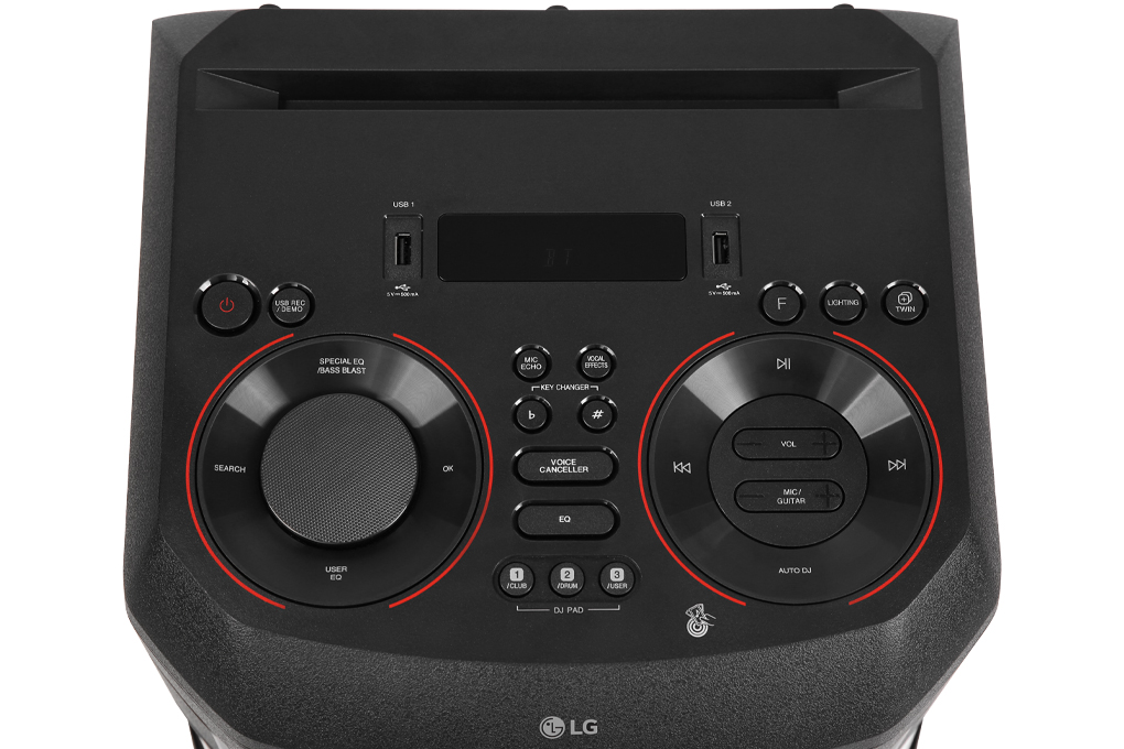 Trên sản phẩm còn trang bị bàn hiệu chỉnh DJ – DJ Pad cùng các hiệu ứng âm thanh được tích hợp gồm 3 chế độ: Club, Drum, và User. Khi ở chế độ User, bạn có thể tạo hiệu ứng âm thanh (mẫu) thông qua ứng dụng Xboom sau đó đồng bộ hóa các mẫu đó phát ra loa dễ dàng.