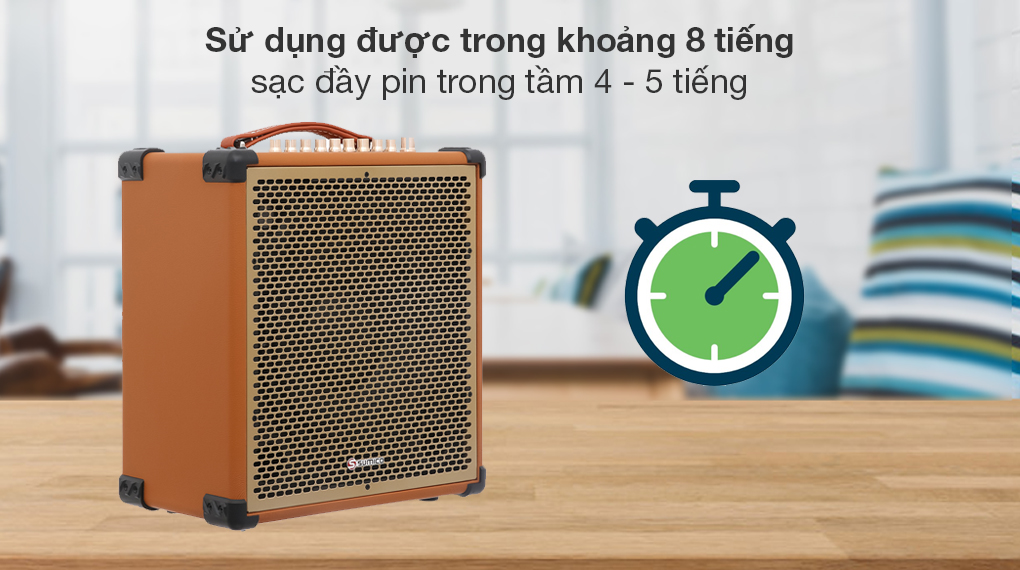 Thời lượng pin của loa Sumico đáp ứng đến khoảng 8 tiếng sử dụng liền mạch với mức âm lượng 50% và sạc đầy trong tầm 4 – 5 tiếng. Từ nay, bạn có thể mang loa đến những nơi không có nguồn điện trực tiếp để vui chơi thỏa thích, đặc biệt phù hợp cho bạn yêu mở tiệc ngoài trời.