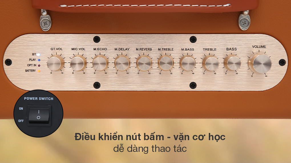 – Các hiệu ứng, dải âm, âm lượng dễ dàng tùy chỉnh qua bảng điều khiển nút bấm – vặn cơ học trên loa karaoke xách tay Sumico này được chế tác với chú thích đơn giản, dễ nhận diện và sử dụng.