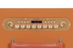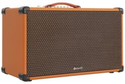 – Vỏ loa được làm bằng gỗ MDF và được bọc da PU cao cấp, có màu nâu cam độc đáo. Ngoài ra, các góc loa còn được bọc nhựa, chống va đập và đảm bảo độ bền của loa lâu hơn. Lớp ê căng có chất liệu làm bằng lưới vải màu nâu và màu đen xen kẽ (được tạo từ sợi tinh chế chọn lọc), giúp tăng thêm vẻ đẹp thẩm mỹ cho loa.