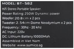 Tóm lại, loa karaoke xách tay Sumico BT-S82 mang lại chất lượng âm thanh cao cấp mà bạn có thể sử dụng trong nhà hoặc ngoài trời với diện tích không gian trên 50m². Bạn có thể sử dụng loa phục vụ cho mục đích thuyết trình, giảng dạy hoặc hội thảo tiện lợi.