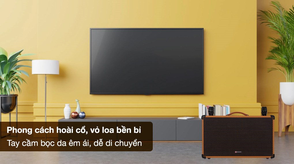 – Sản phẩm gồm có 1 loa karaoke xách tay, 1 remote và 2 micro không dây.
