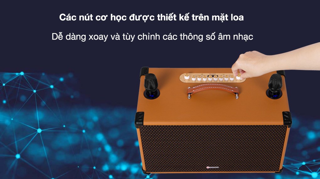 Micro không dây: Được thiết kế nhẹ với chất liệu vỏ bằng hợp kim tinh chế. Phần củ micro bên trong có khả năng giảm thiểu tình trạng hú rít và nhiễu sóng đáng kể, đồng thời tái tạo tiếng hát và hỗ trợ luyến láy tốt hơn.