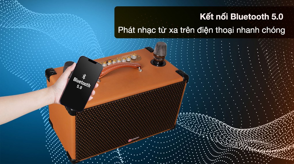 Loa karaoke xách tay Sumico BT-S82 có thể kết nối Bluetooth chuẩn 5.0 với điện thoại và nhiều thiết bị di động khác, giúp bạn phát nhạc từ xa nhanh chóng mà không cần sử dụng dây cáp kết nối theo kiểu truyền thống.