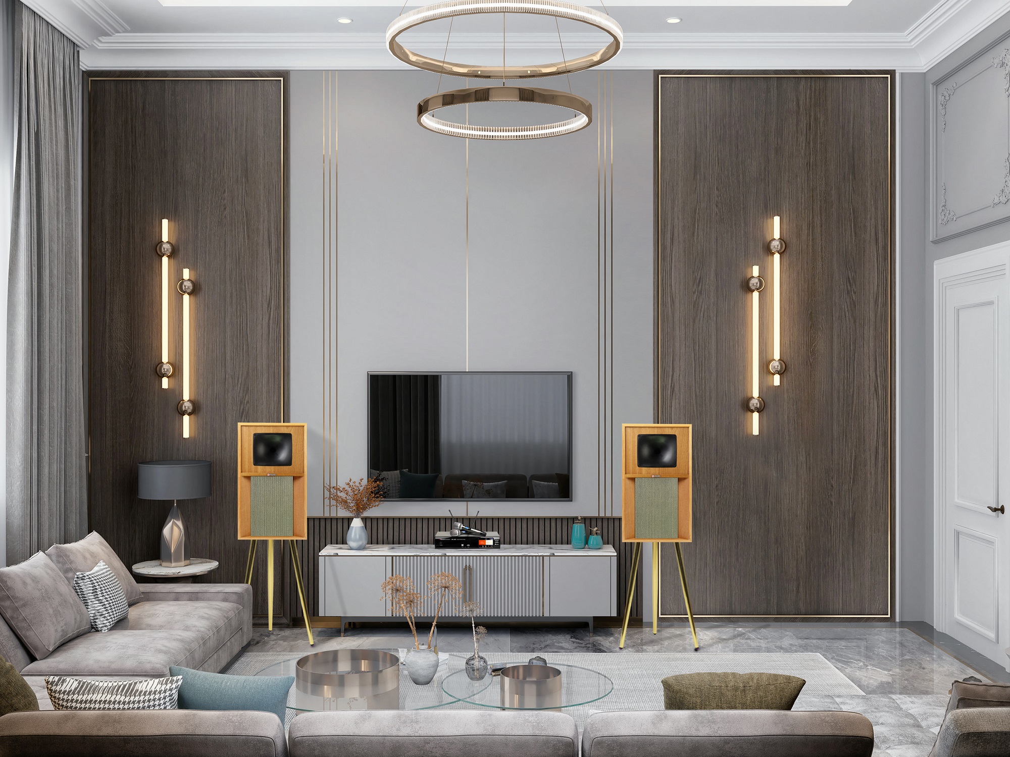 Loa cho người dùng tùy chọn thoải mái gắn chân sơn ánh kim sang trọng hoặc đặt loa để kệ, bàn gọn gàng.