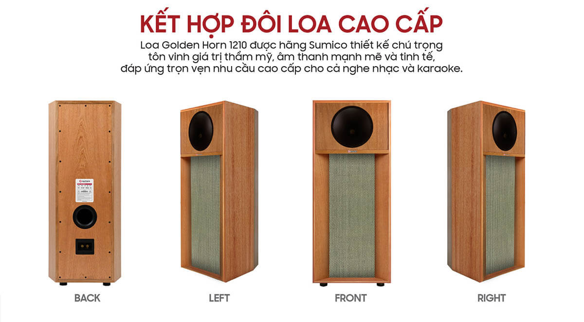 Loa Sumico Gold Horn 15 được trang bị hệ thống 4 loa 3 đường tiếng, Loa Sumico Gold Horn 15 tái tạo âm thanh vô cùng sống động: