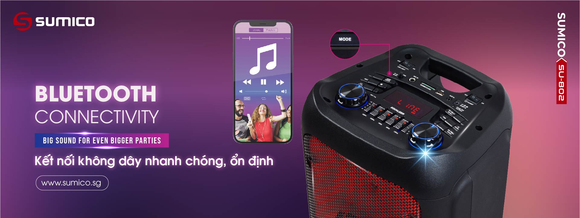 1. Nhấn MODE chọn chế độ kết nối Bluetooth trên cả 2 loa (màn hình LED hiển thị dãy chữ BT).