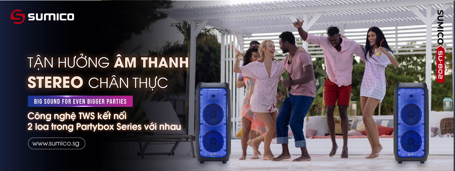Kết nối không dây 2 loa tạo hệ thống âm thanh Stereo và mở rộng không gian hoạt động.