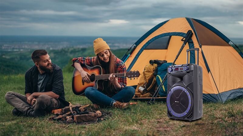 -Loa karaoke di động kiểu dáng hiện đại, âm thanh sống động, pin dùng cả ngày thoải mái vui chơi.