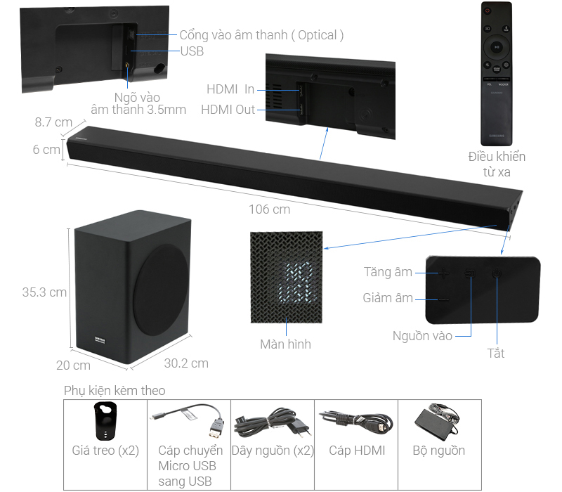 Kết nối trên loa thanh soundbar Samsung cho đường truyền ổn định, thao tác nhanh chóng cùng chất lượng rõ ràng, sắc nét để bạn trải nghiệm giải trí thêm trọn vẹn, thoải mái.