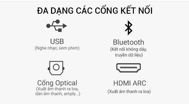 Ngoài ra loa Soundbar này có hỗ trợ kết nối không dây giúp cho việc lắp đặt dễ dàng, tiện dụng và tối ưu không gian được bố trí.