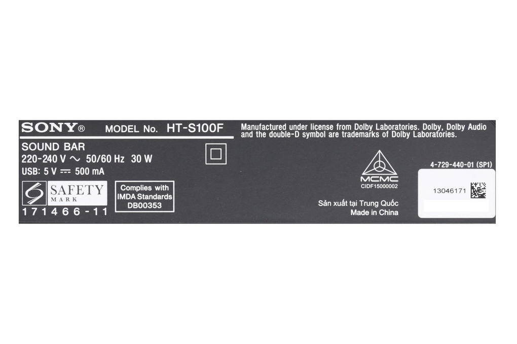 Loa thanh Sony HT-S100F có thiết kế thanh mảnh, tinh tế, mang lại sự sang trọng cho căn phòng của bạn.