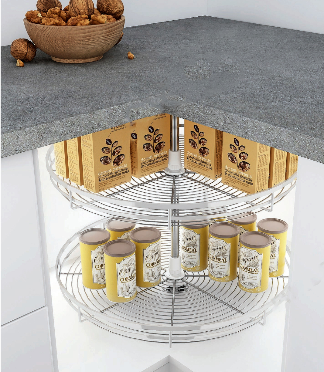 Mâm xoay góc mở toàn phần Eurogold EPL360A gồm có 2 khay để đồ thiết kế đa năng tích hợp để được chai lọ, gia vị, nồi chảo.. vào cùng một sản phẩm.
