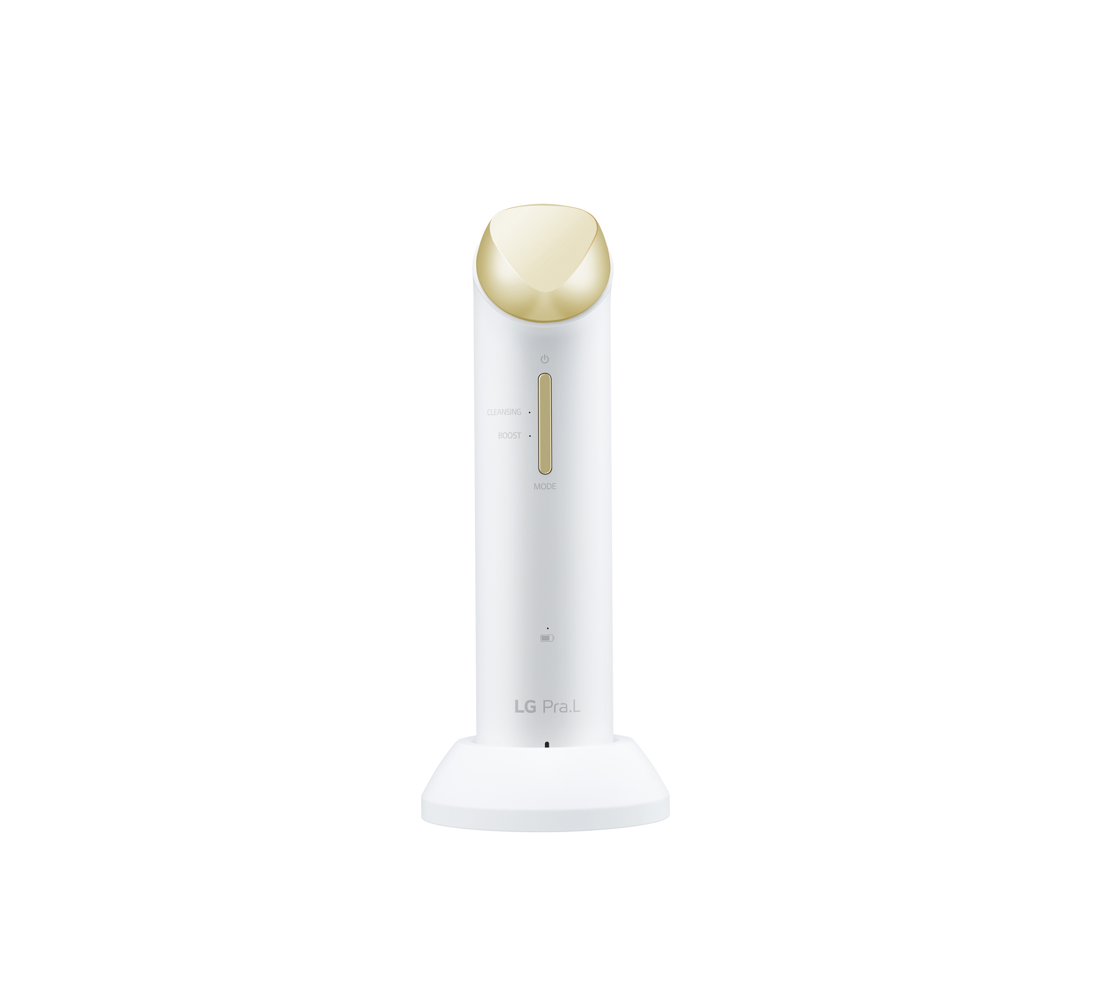 – Rửa sạch mặt bằng máy rửa mặt LG Pra.L Dual Cleanser.