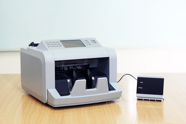 Máy đếm tiền là một thiết bị cho phép người dùng xác định số lượng tiền chạy qua khe đếm tiền trong máy, giúp người sử dụng tránh được tình trạng nhầm lẫn khi kiểm kê số tiền lớn.