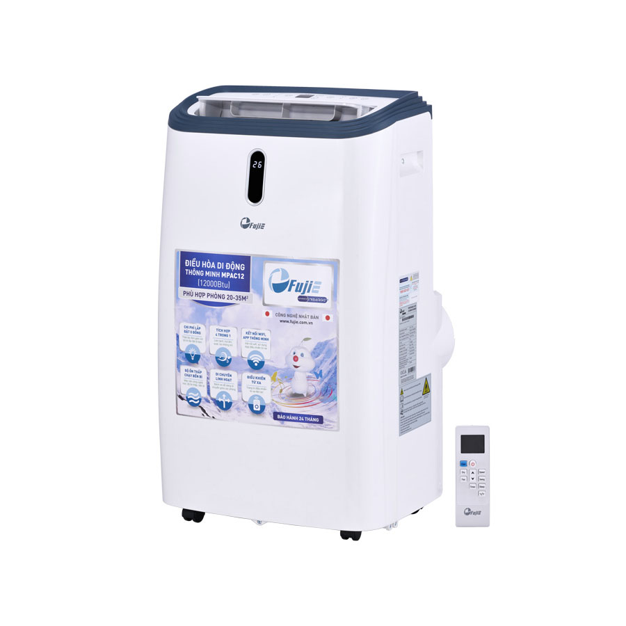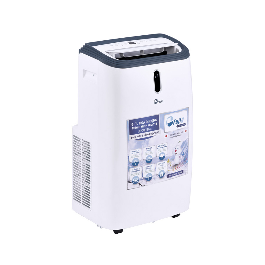 Điều hòa di động FujiE MPAC12 được áp dụng công nghệ sản xuất của Nhật Bản cho khả năng làm lạnh nhanh, công suất làm lạnh đạt 12.000 BTU sẽ phù hợp sử dụng cho không gian phòng kín có diện tích từ 20 – 35 m2.