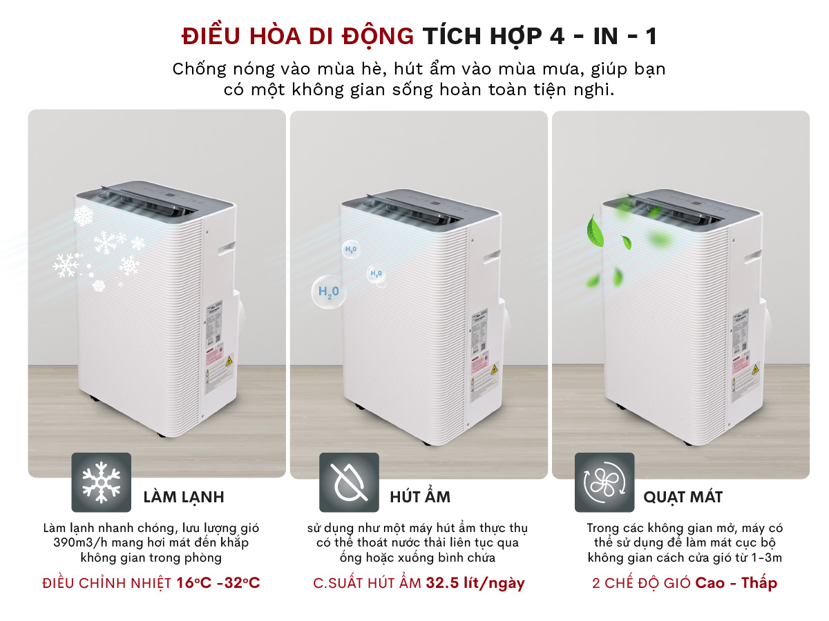 Chiếc máy điều hòa di động này của thương hiệu Fujihome sở hữu 4 tính năng trong cùng 1 sản phẩm: