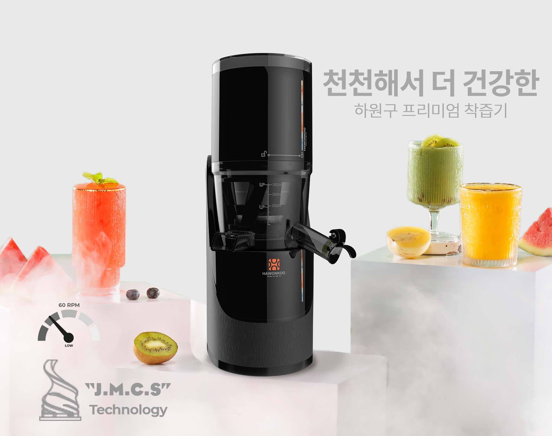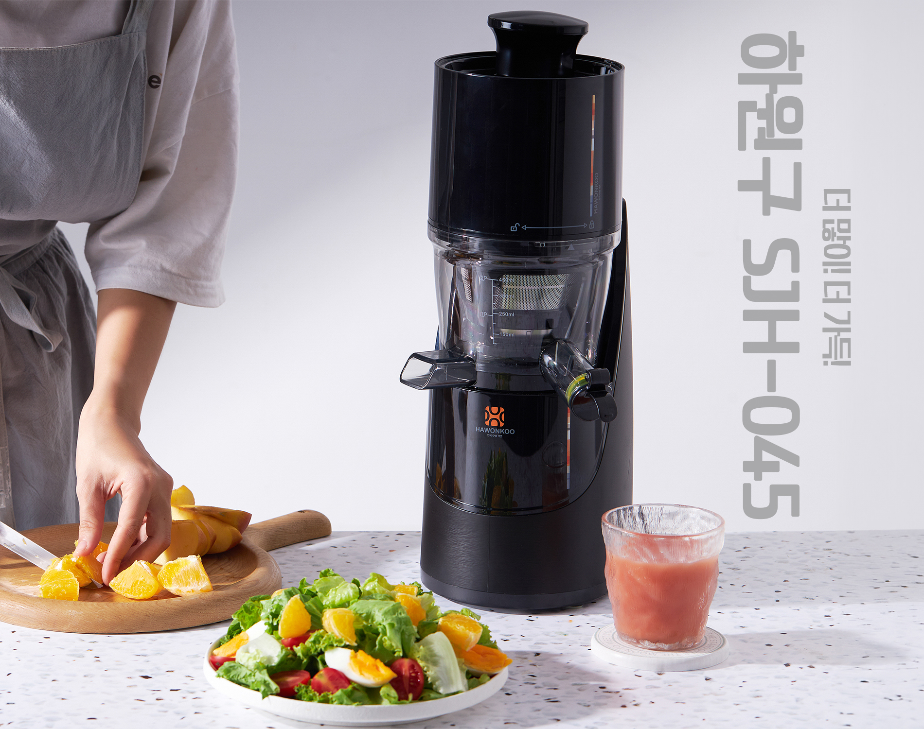 Máy ép chậm SJH-045 là dòng sản phẩm máy ép chậm Hawonkoo sử dụng công nghệ ép chậm bằng lực cưỡng bức “J.M.C.S” với tốc độ 60 vòng/phút, mang lại hiệu quả vượt trội: