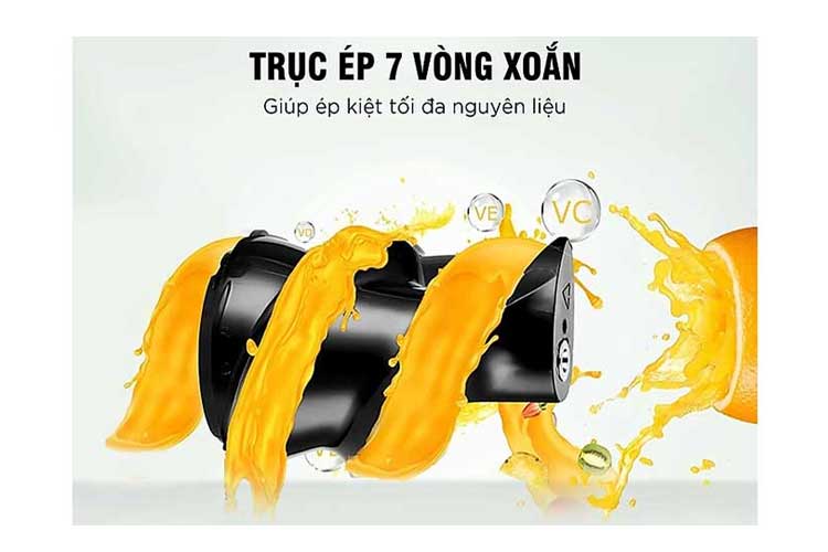 Với công suất lớn cùng tốc độ ép chậm 55 vòng/phút, máy giúp ép kiệt bã, ép nhuyễn ngay cả những loại quả cứng như cóc, ổi, xoài xanh và các loại trái cây mềm hay rau xanh.